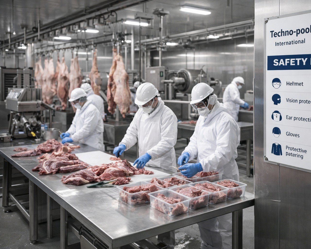 Techno Pool International delivers comprehensive meat processing solutions supporting hygienic, efficient, and compliant operations across the entire processing chain. Our expertise includes slaughtering facilities, deboning, portioning, processing, chilling, freezing, and packaging systems designed to meet international meat safety and hygiene standards.